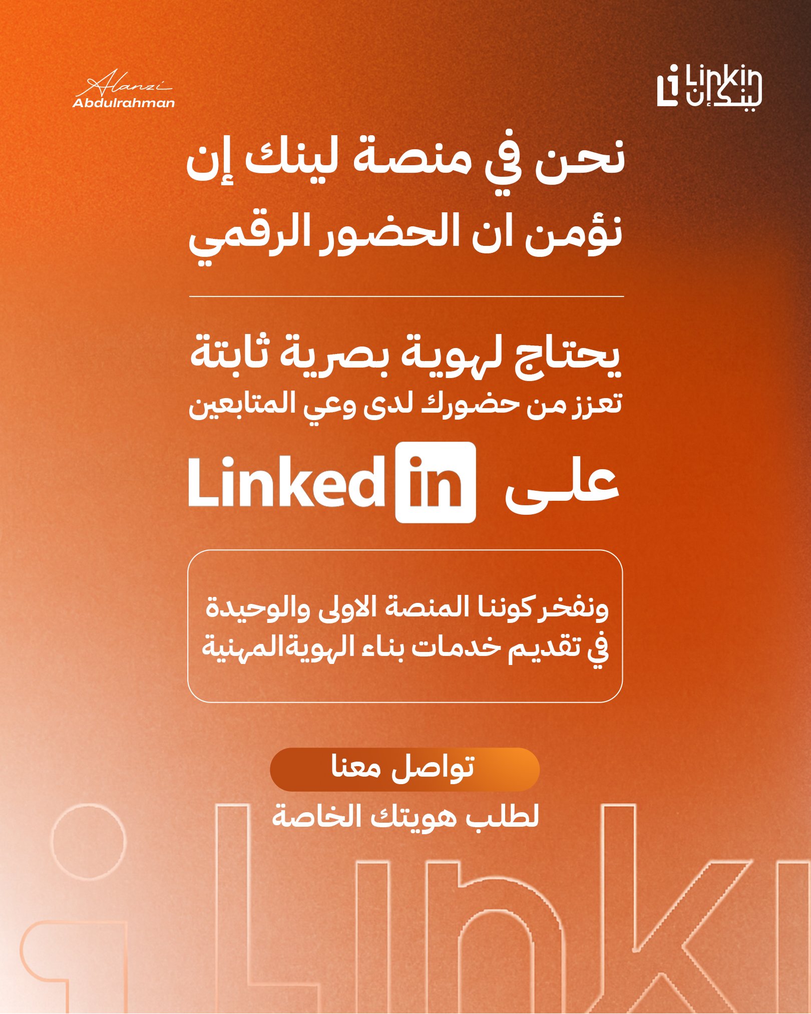 في منصة لينك إن | Linkin.sa، نقدم لك خدمة تصميم الهوية البصرية الشخصية بأسلوب يعكس شخصيتك، قيمك، وطموحاتك، لتكون حضورك الرقمي والواقعي أكثر قوة واتساقًا.